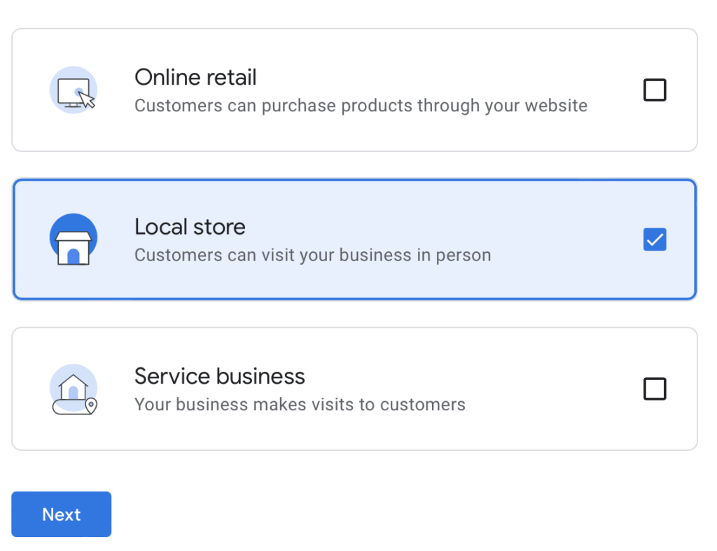1. Select the category that best fits your business. This helps Google show your business in relevant searches. A campground is a physical location customers can visit, so choose “Local Store”.